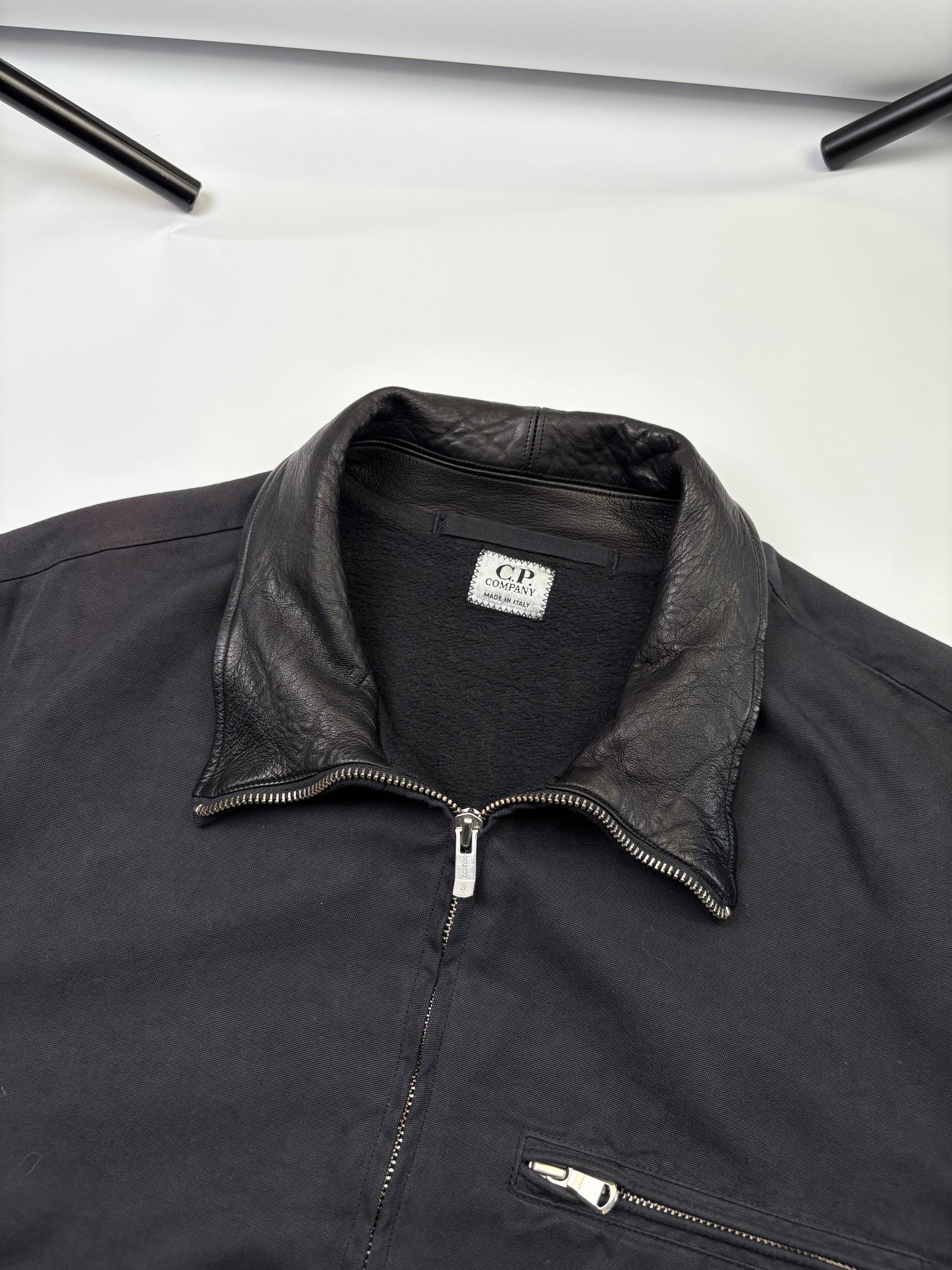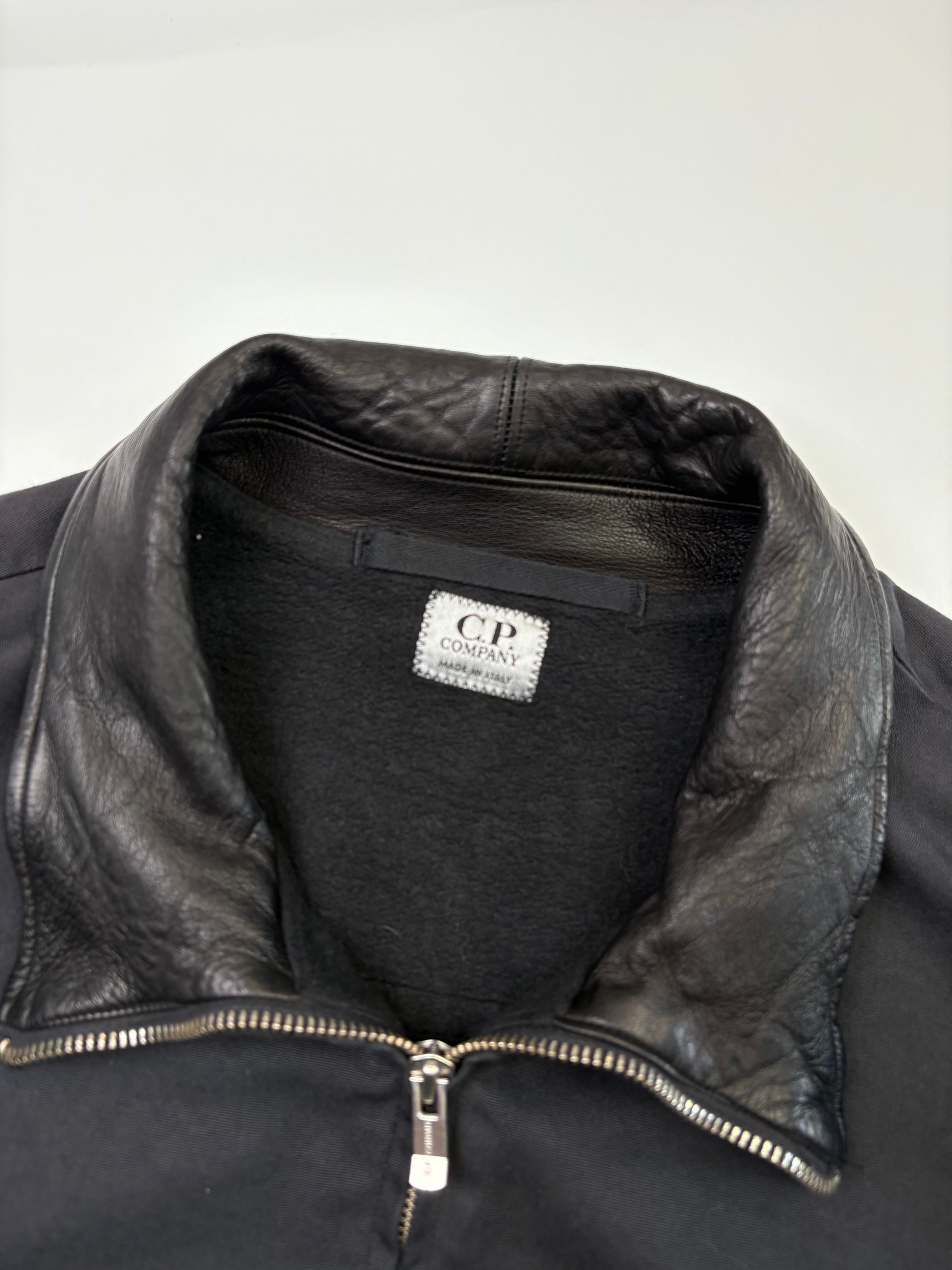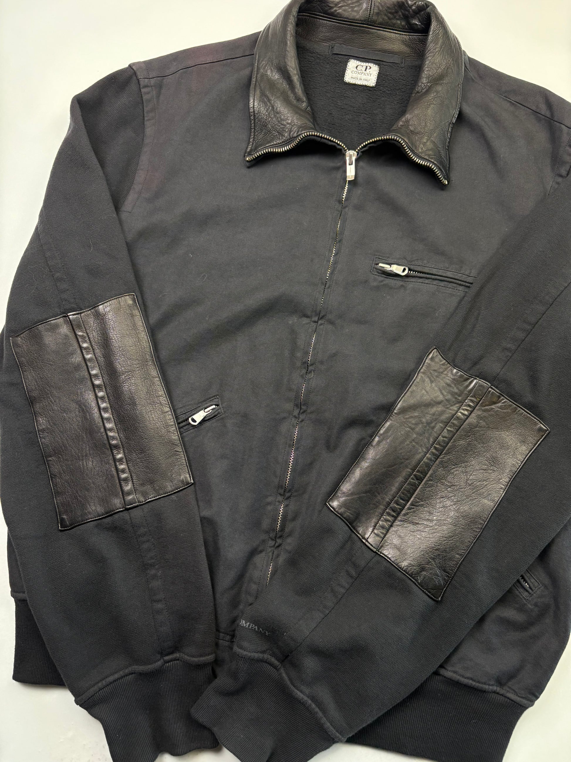 Black with leather collar and leather elbow pads - small text logo to cuff - early 2000’s