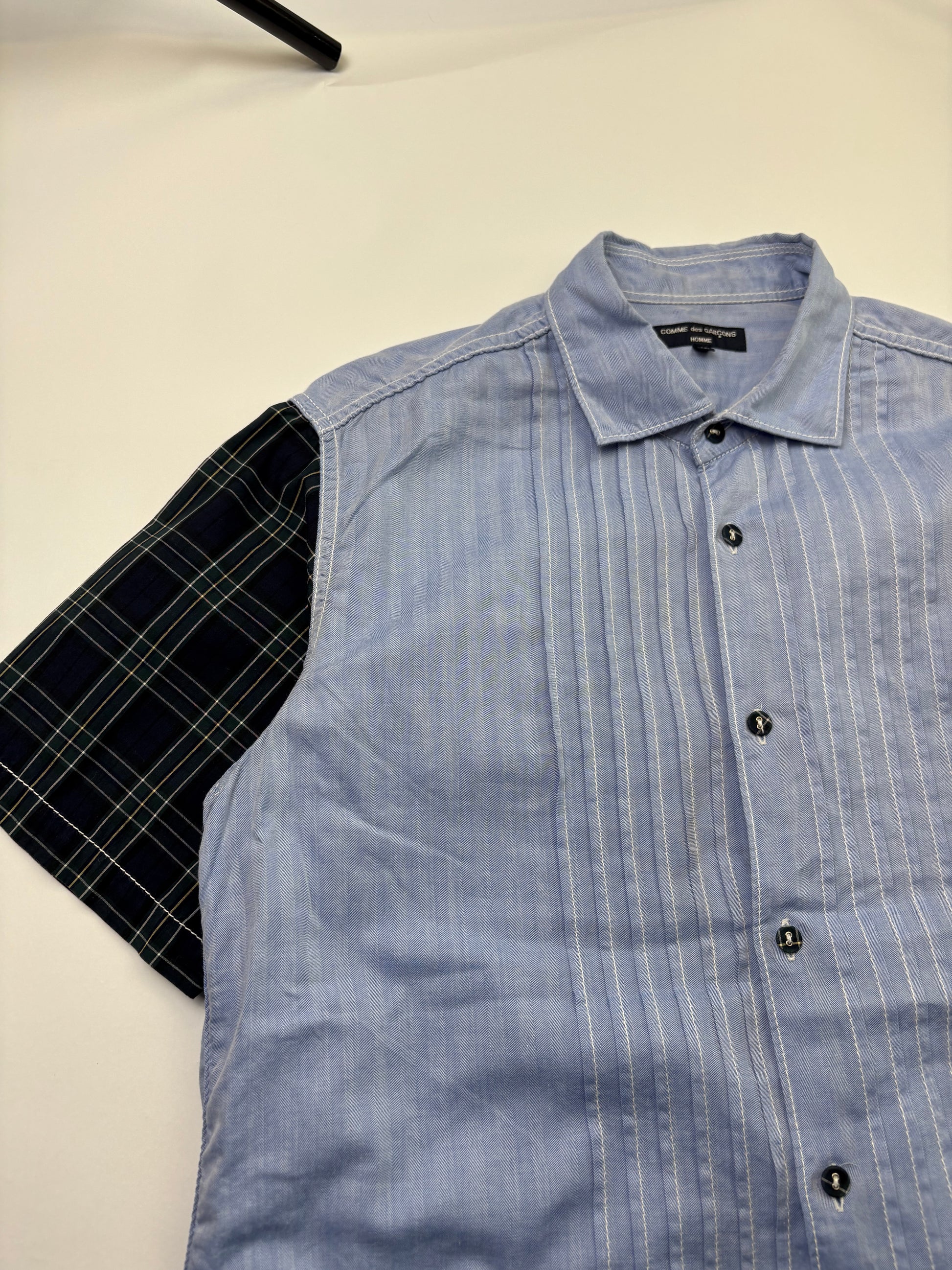 Light blue with plaid sleeves and pleated front design - 2009