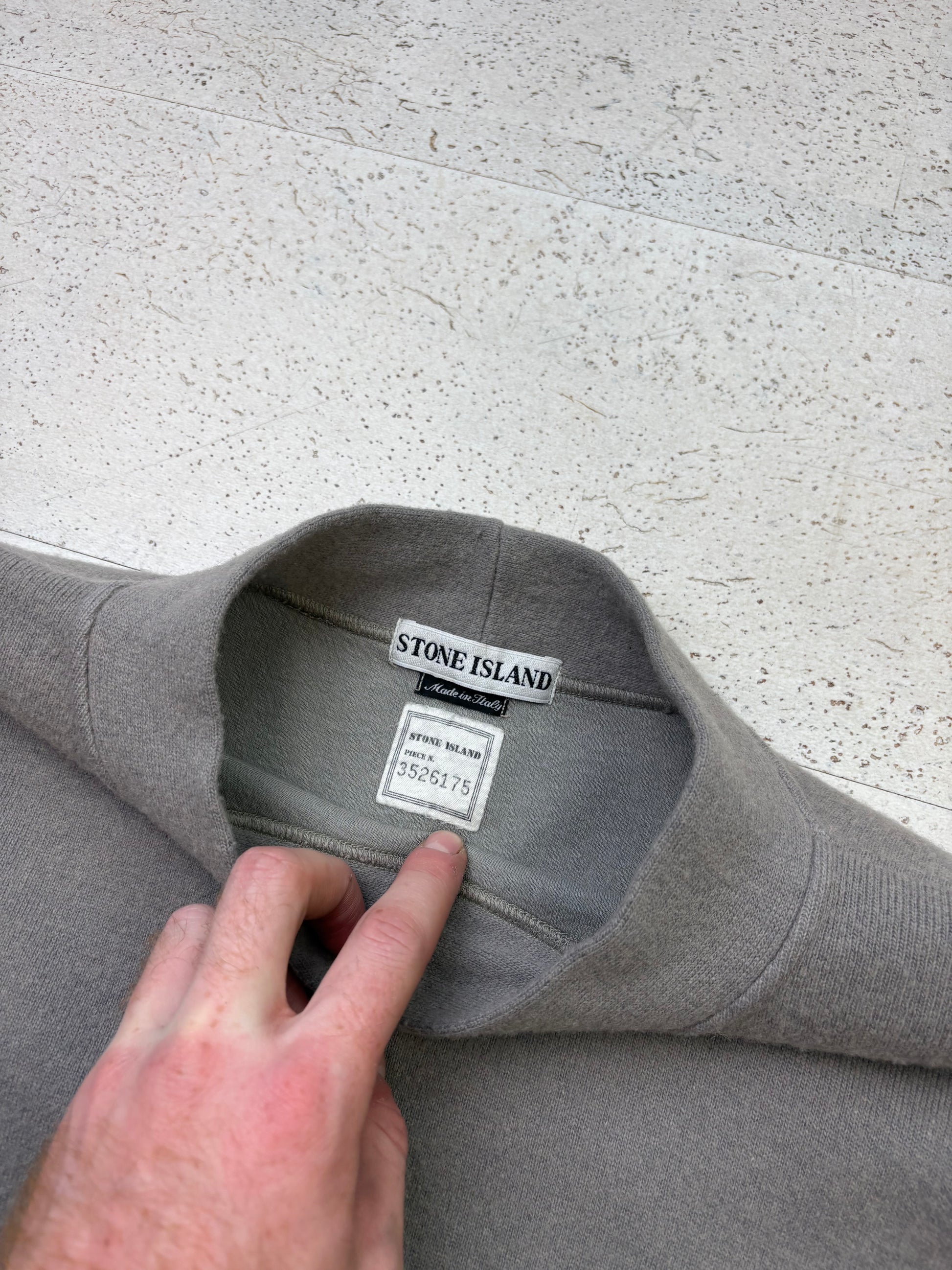 Grey fleece jumper with green edge badge to arm, boxy fit, 1990’s