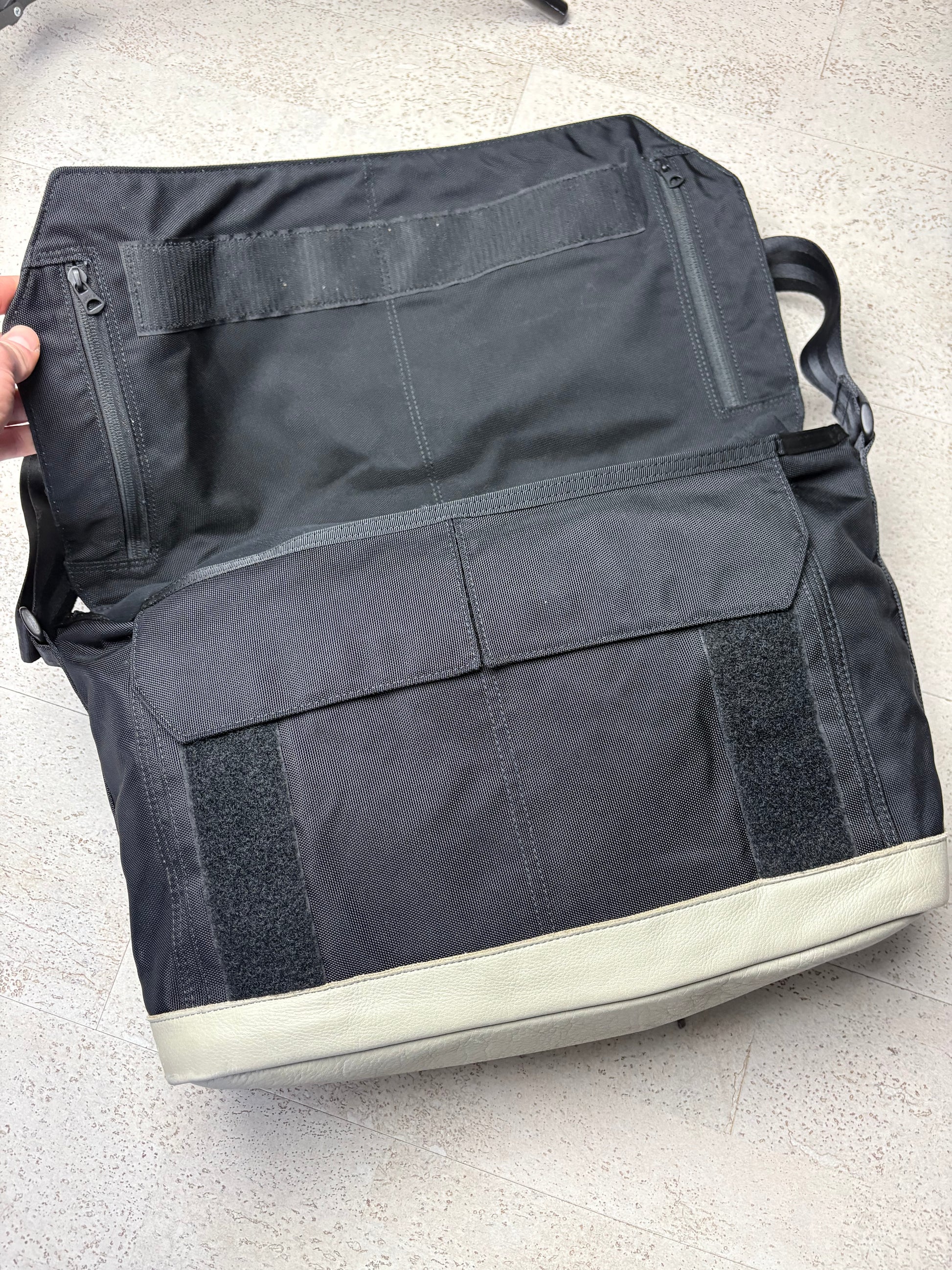 Black/Grey colourway with leather panel to front - 8+ pockets